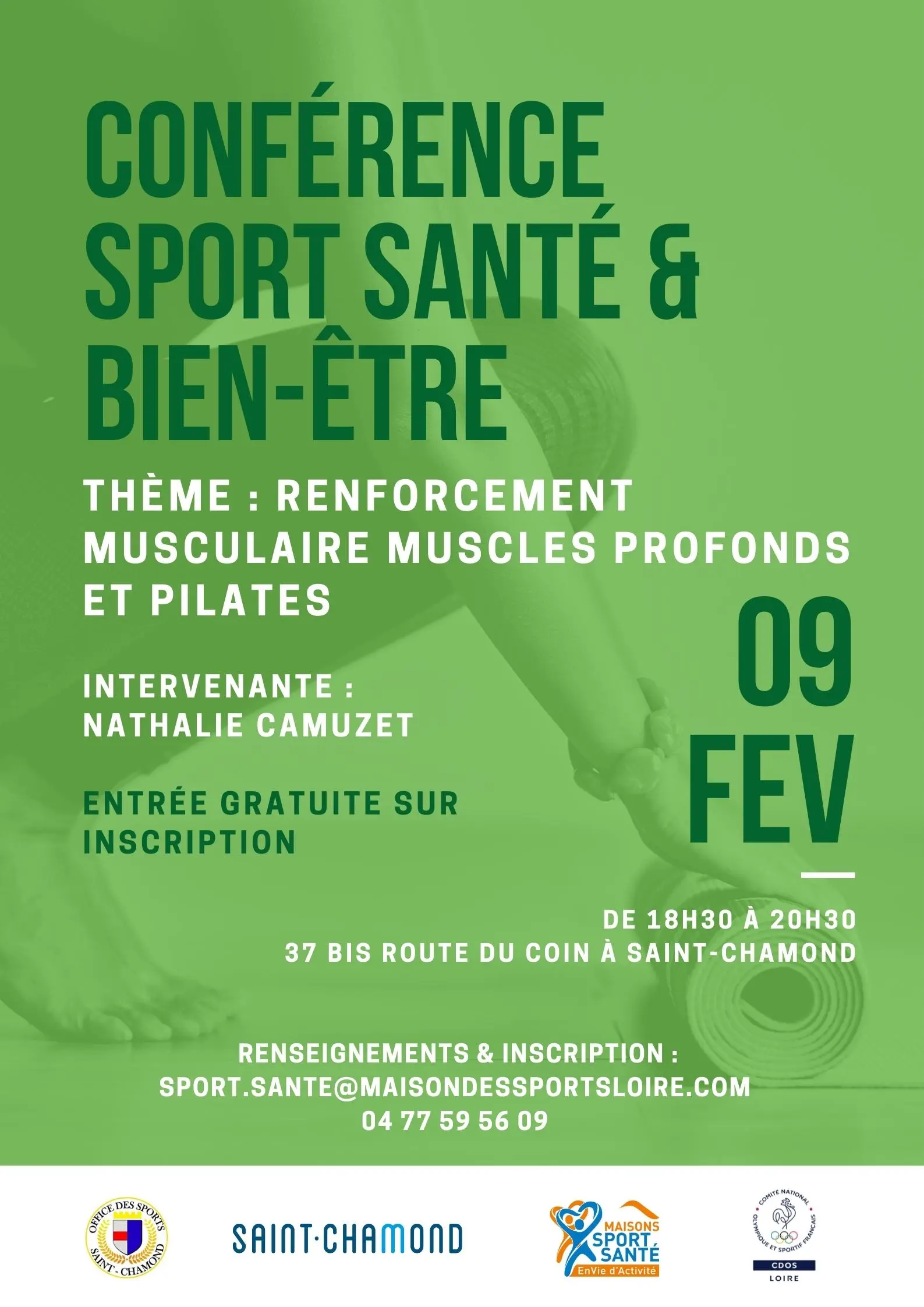 Jeudi 9 février 2023, notre Office a accueilli une soirée de formation proposée par le Comité Olympique et Sportif de la Loire. Cette conférence, organisée à destination du monde sportif saint-chamonais avait pour thème : Renforcement des muscles profonds : le Pilates