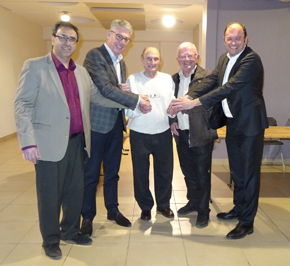 10 mars 2017, salle municipale d’Espace Pablo à Saint-Chamond. Dès 19h, une centaine d’invités se pressent autour du buffet apéritif dressé par les bénévoles. Ce soir, c’est la traditionnelle soirée des associations, organisée comme chaque année par notre Office des Sports. Mais cette année, le rendez-vous attendu par les responsables des associations sportives de la ville revêt un parfum particulier. Pour cette occasion, le président Antoine Vincendon a tenu à inviter les 4 derniers maires de Saint-Chamond, eux qui se sont succédés aux commandes de la ville depuis 40 ans.