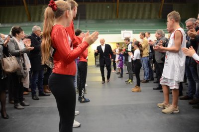 Les jeunes sportifs forment une haie d’honneur pour saluer l’arrivée d’Antoine.
